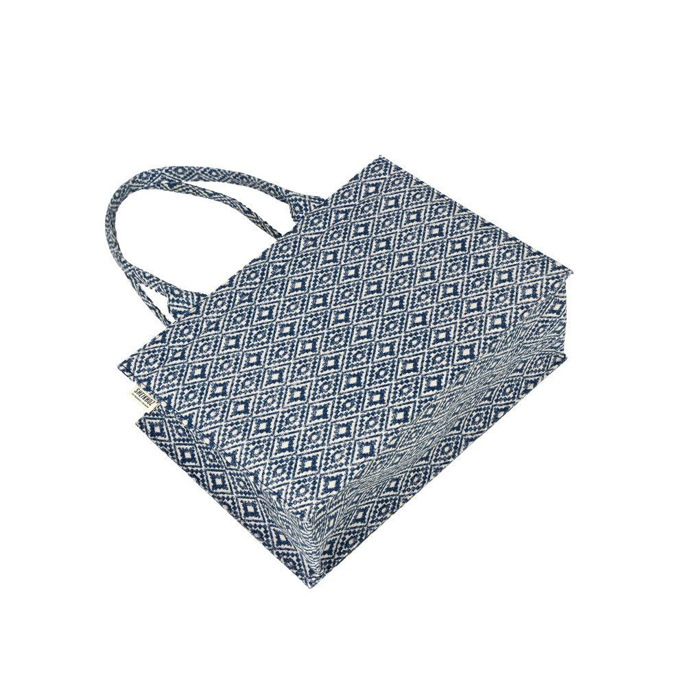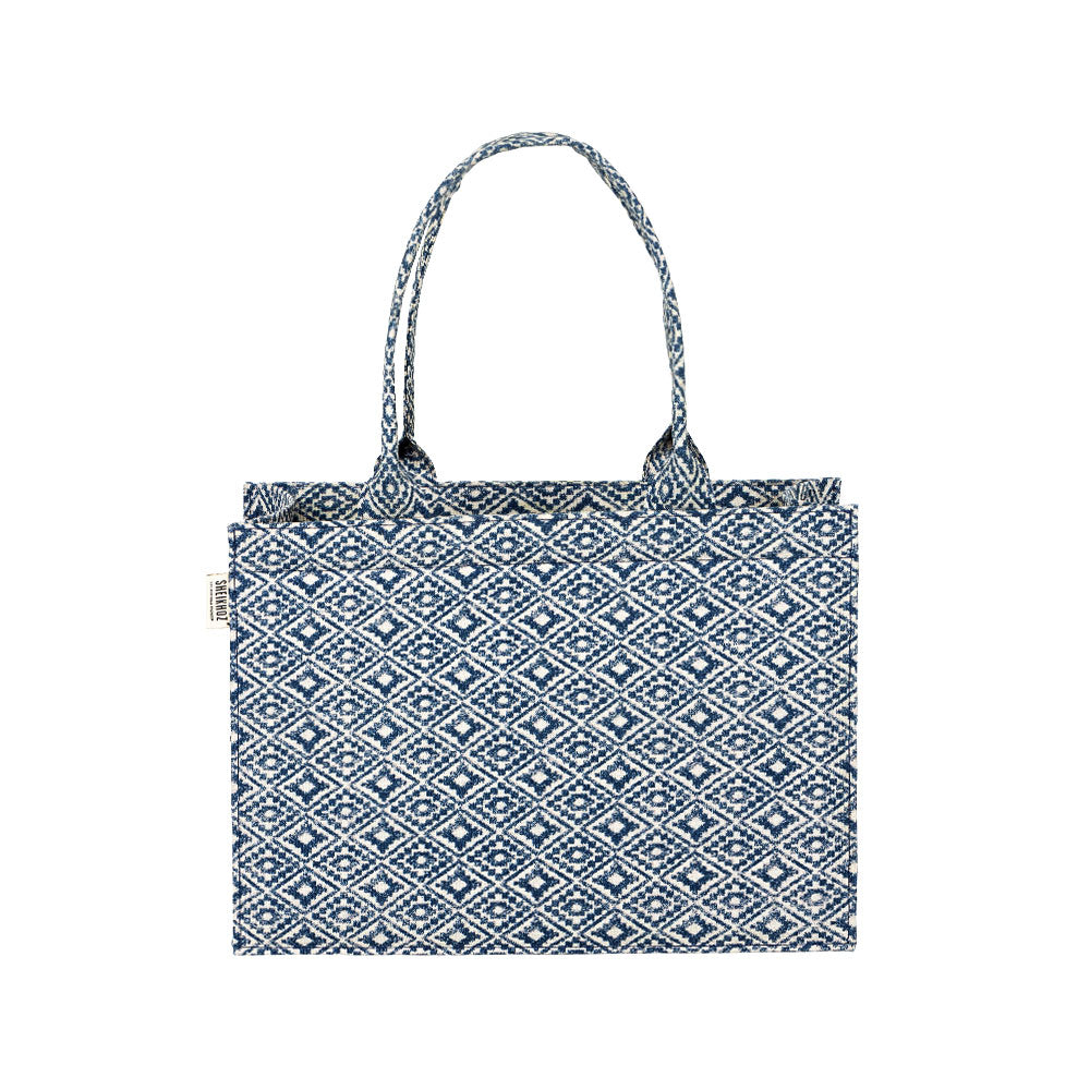 Argyle Elegance – Versatile Blue Cotton Canvas Tote Bag