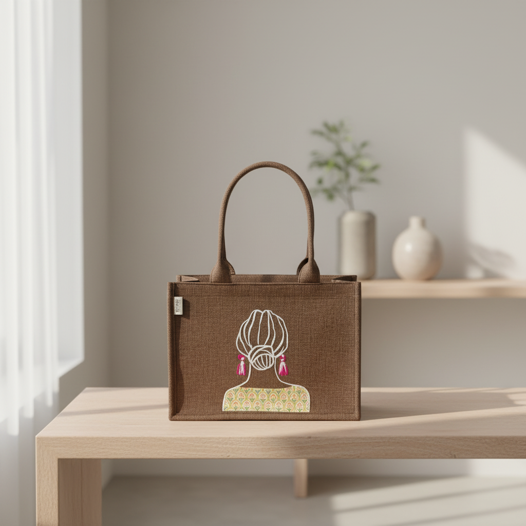 Carry art and sustainability with the Artistic Girl Jute Tote by SHEIKHOZ — a stylish women’s shoulder bag crafted from premium, eco-friendly jute. Featuring a warm earthy beige tone and a modern artistic girl print, this handbag blends fashion, function, and conscious living.