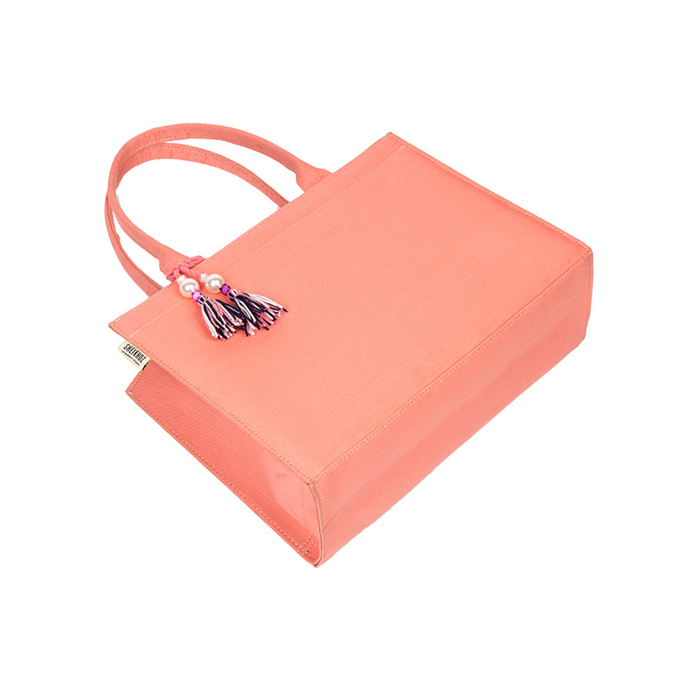Boho Chic Pink Cotton Tassel Tote – Versatile Everyday Handbag