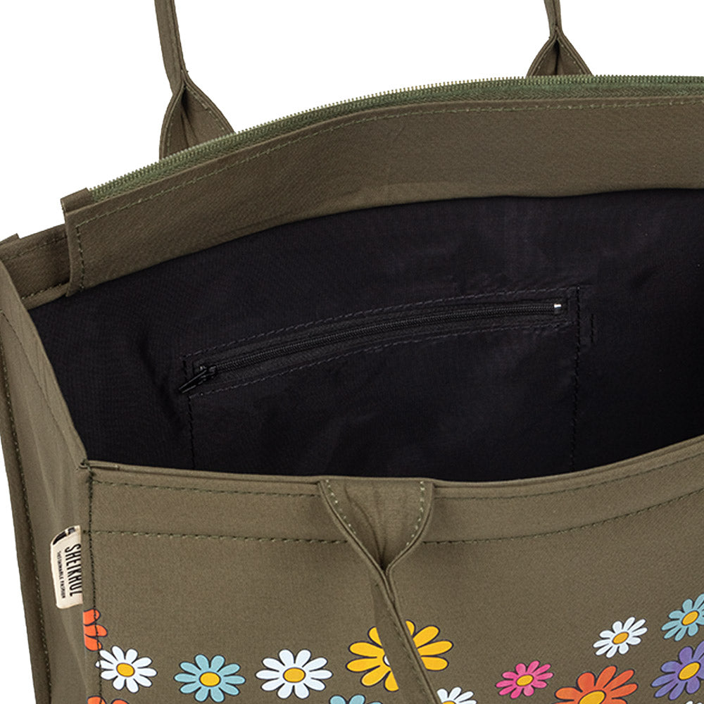 Green Canvas Tote – Multicolor Flower Fusion