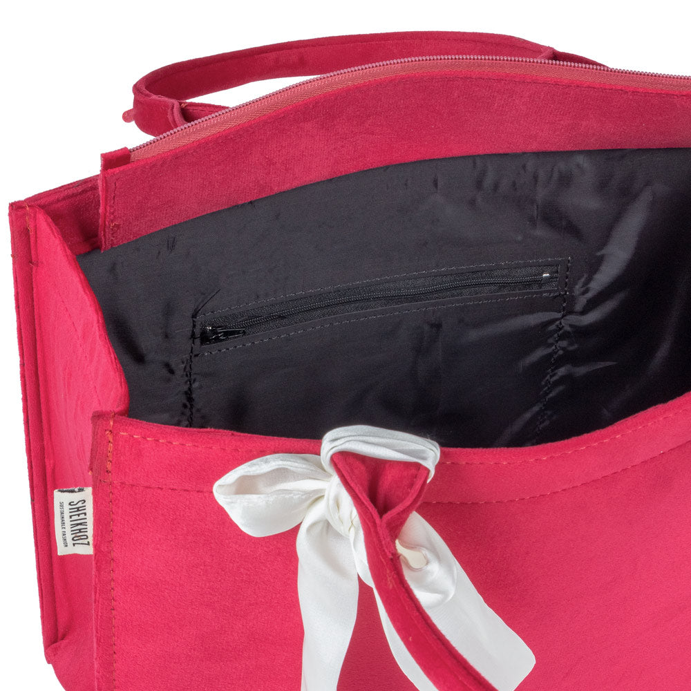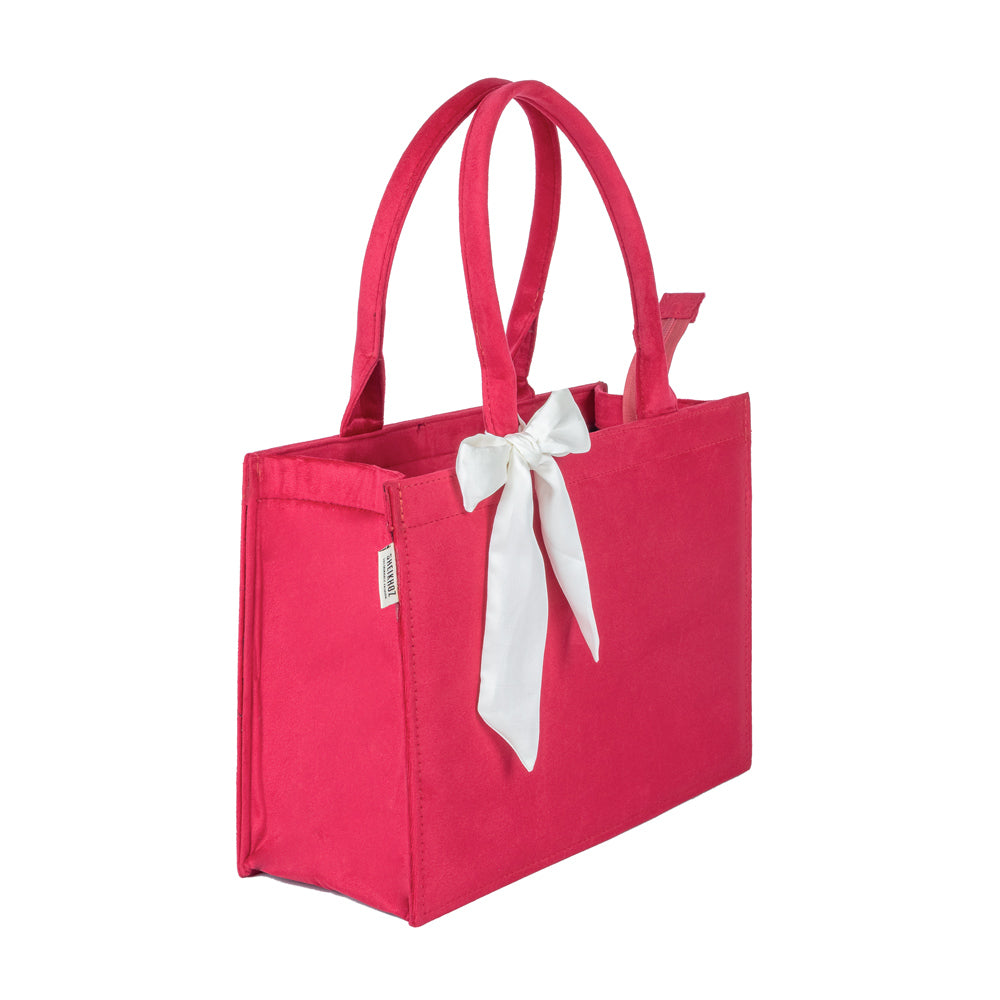 Step into sophistication with our Red Knotted Velvet Tote Bag, a perfect fusion of luxury and sustainability. Crafted from premium eco-friendly velvet, this handbag offers style and environmental consciousness, making it a chic yet responsible choice. The knotted detailing adds an elegant touch, while the spacious interior ensures you can easily carry your essentials, whether you're using it as a tote bag, shoulder bag, or handbag for daily use or special occasions. This velvet tote is made from sustainable materials and aligns with your eco-friendly lifestyle while enhancing your wardrobe.