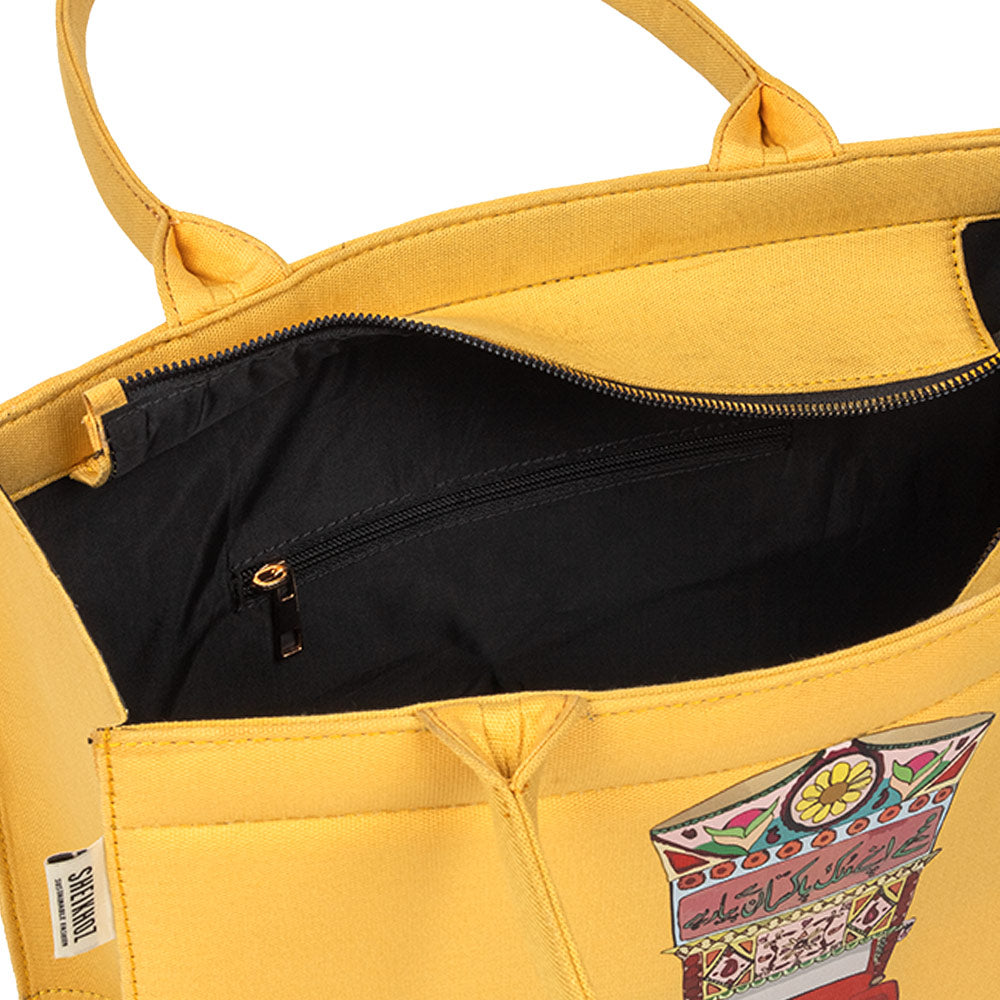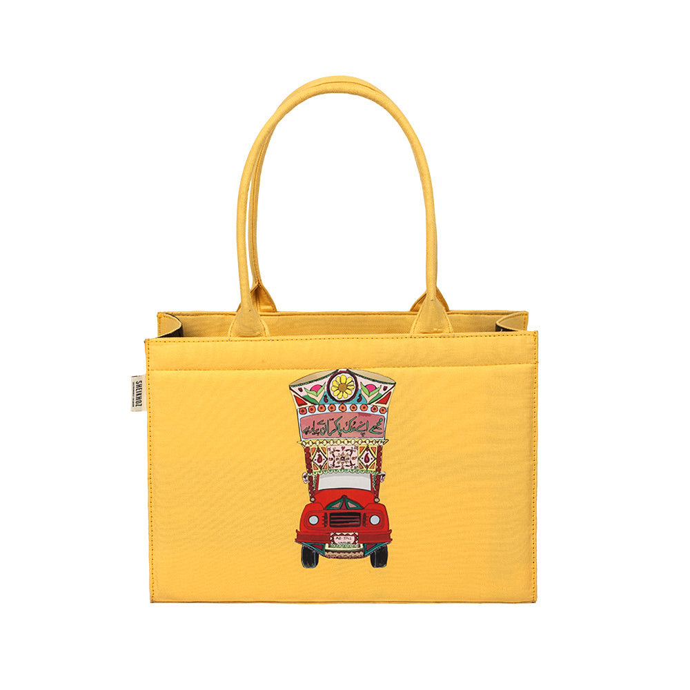 Illuminate your style with our Golden Truck Art Tote. This eye-catching yellow accessory features a traditional truck print that celebrates cultural heritage with a modern twist. Crafted from eco-friendly materials, it’s perfect as a ladies handbag, a chic shoulder bag, or a practical college/university bag. With its spacious design and vibrant detailing, this tote lets you carry your essentials in sustainable style wherever you go. Shop now and embrace a bold blend of tradition and contemporary chic!