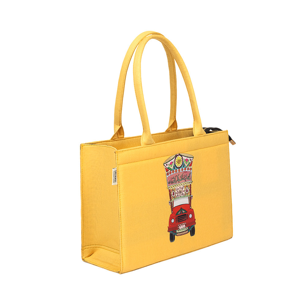 Yellow Truck Art Tote – Vibrant Heritage Statement Handbag