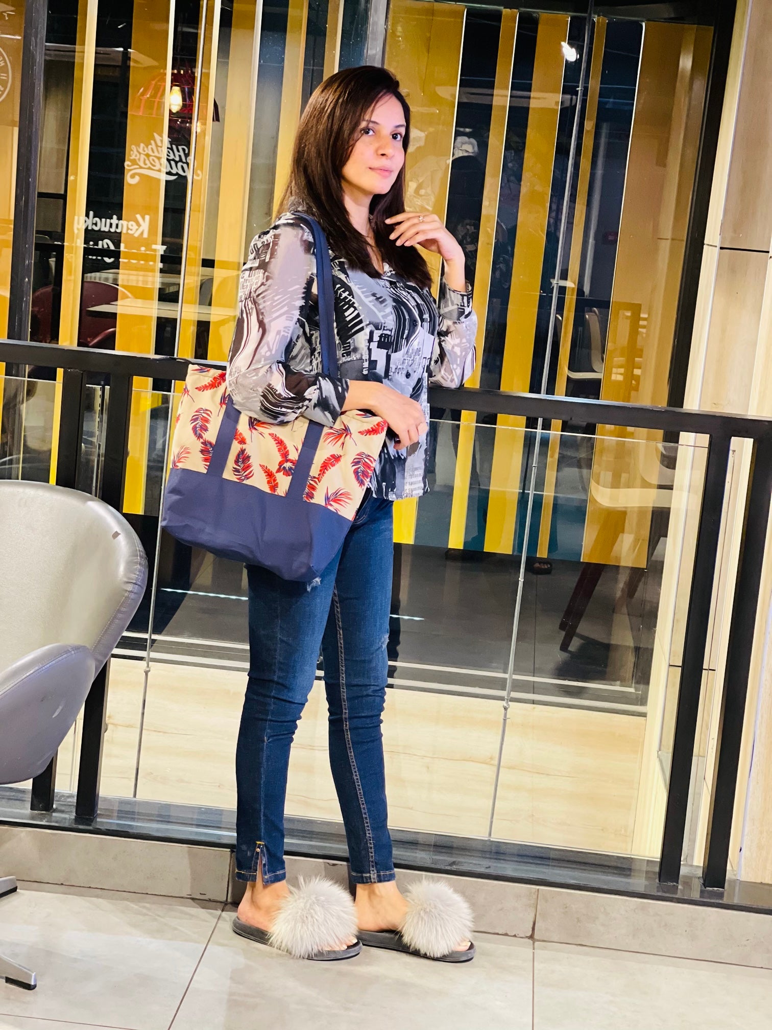 Zipper bag having one large, open main compartment and two handles that allow for easy carrying over the shoulder or by hand. Adding a zipper closure to a bag provides an extra layer of security and helps keep the contents of the bag more secure. Printed cotton bag is perfect for everyday life.